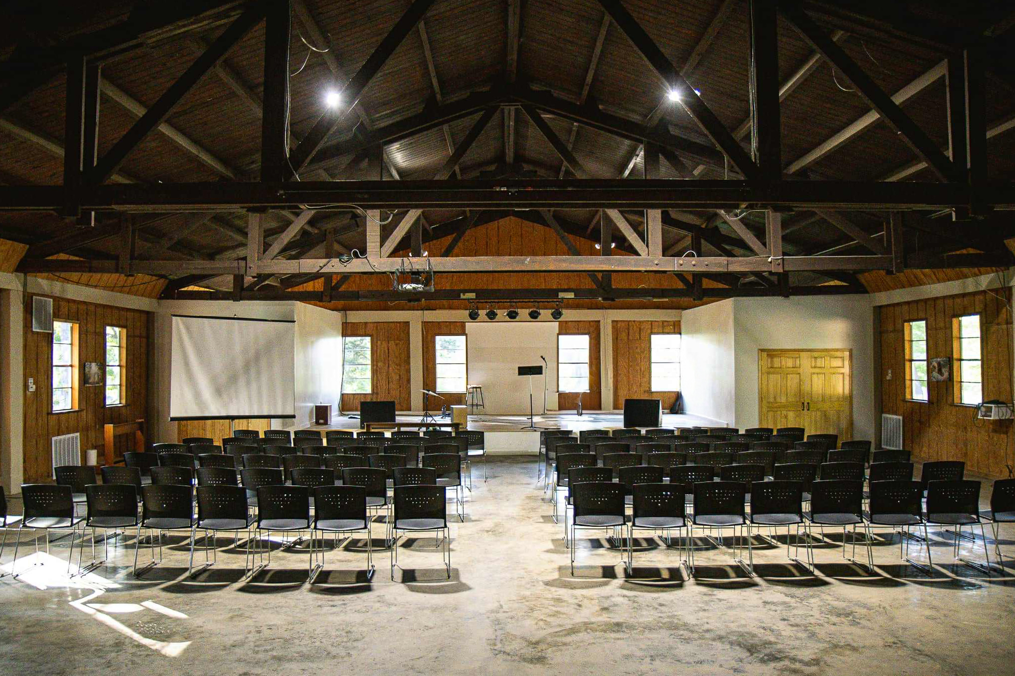 Overlooking Lake Copiah, the Tabernacle serves as a worship space, meeting space, or an indoor game space for guests. The Tabernacle can seat up to 150 people. Chairs and tables are available in this space for groups to set up to their liking.